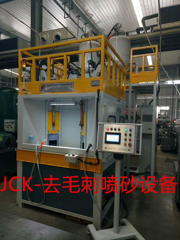 吉川科技JCK系列壓入式液體噴砂去毛刺設(shè)備顛覆了壓入式液體噴砂機的行業(yè)零空白,目前也是國內(nèi)唯一一家研發(fā)生產(chǎn)出壓入式液體噴砂去毛刺設(shè)備廠家。流體磨料清理速度可達(dá)到每秒180米,通過特殊射流噴嘴可以去除機械零部件切削、磨削后形狀邊緣和內(nèi)孔交叉孔毛刺,替代毛刷和熱法去毛刺等工藝。
