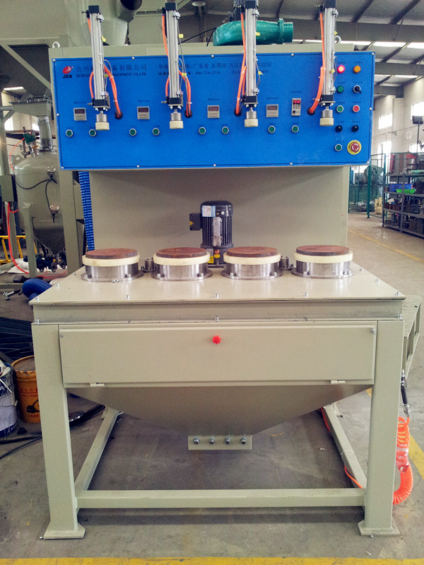 一、 設(shè)備組成: a)?? :主機(jī) i.????? 主機(jī)由小轉(zhuǎn)盤轉(zhuǎn)動(dòng)機(jī)構(gòu)、噴槍擺動(dòng)機(jī)構(gòu)、噴砂室、操縱系統(tǒng)、儀表箱等組成,電機(jī)均采用臺(tái)灣臺(tái)邦牌。室體由3mm冷軋鋼板焊接而成,內(nèi)外表面噴漆,外形尺寸: 1350X1250X1950(mm)。 ii.????? 4支噴砂槍分4組全部固定在軸上定點(diǎn)對(duì)工件噴砂;噴嘴材質(zhì):進(jìn)口碳化硼噴嘴。噴嘴通徑:Ф8mm。